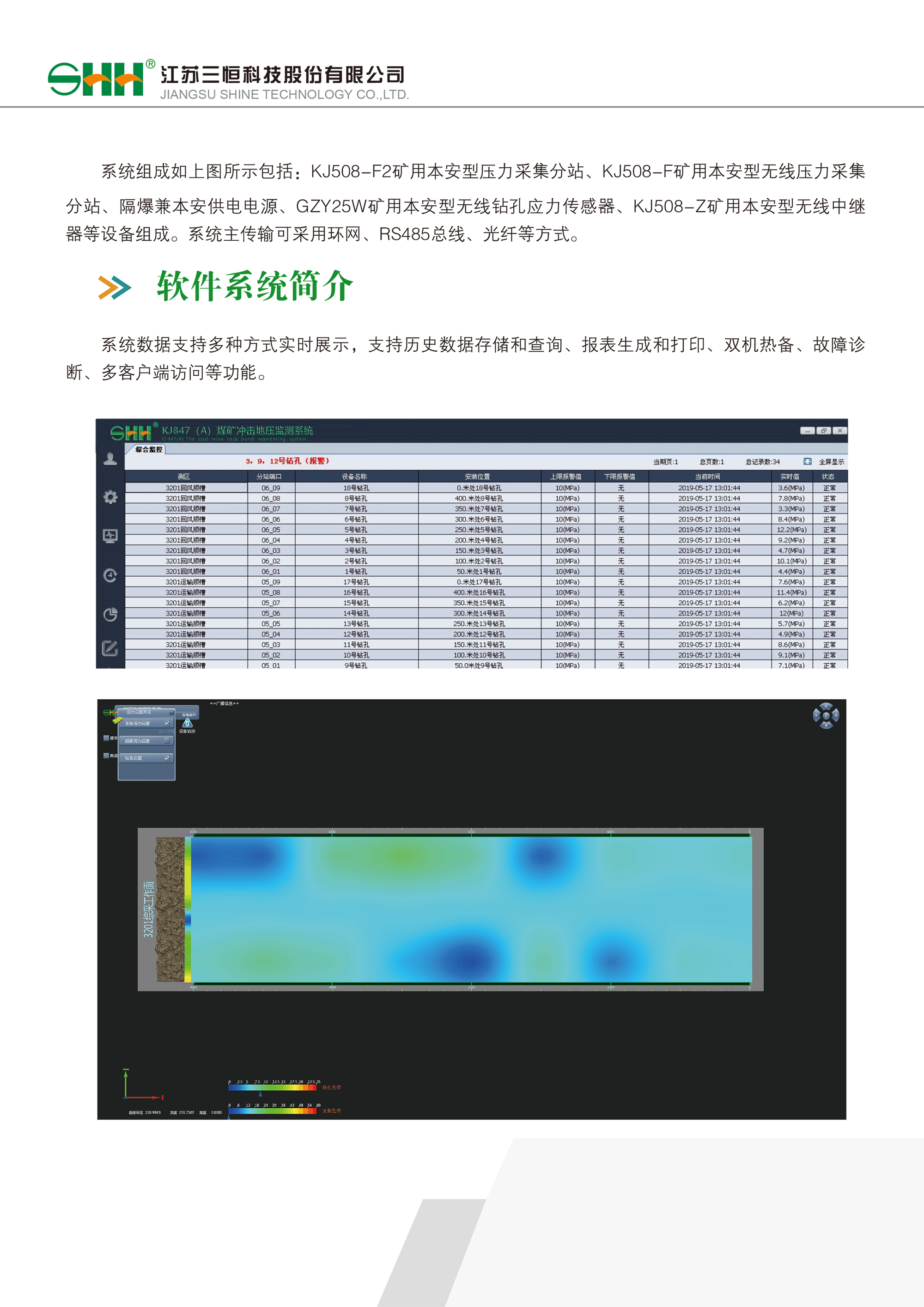 江苏三恒科技股份有限公司是股份制形式的高新技术企业,股份公司下属两个全资子公司和两个控股子公司。企业已有二十余年的历史,是我国煤矿安全生产监控领域的知名企业。公司注册资金1亿元,占地面积 60 余亩,年产值 5 亿元。公司共有员工近 600 人,具有中、高级职称人员 50 多名,本科及以上学历占员工总数 70%以上;公司在山东、山西、江苏、安徽、云南、贵州、四川、广西、河南、河北、东北、陕西、内蒙古、新疆、湖南、湖北等主要产煤区设有办事处和售后服务机构。赢得了广大用户的信任和支持,产品在全国各主要产煤区及非煤矿山广泛应用。公司产品主要有三个专业方向:矿山安全、矿山通讯、矿山自动控制。主要系统有 KJ70X 煤矿安全监控系统、KJ128A 矿用人员管理系统、KT425 煤矿调度广播通讯系统、KT109R 矿用无线通信系统、三维全矿井自动化系统等。公司拥有高素质的专业队伍,大部分技术人员都曾从事过数十年煤矿安全生产综合监控产品的研制、生产及服务,具有丰富的理论基础和实践经验。并不断引进高技术专业人才和先进的生产检测设备。近年来不仅与国内外知名的大型企业合作(中兴通讯、华为、摩托罗拉、IBM、霍尼韦尔等),还与国内知名高校(中国矿业大学、东南大学、河海大学、合肥工业大学等)建立了集“产”、“学”、“研”于一体的立体合作方式。为保障产品技术及质量,公司每年都购置一批大型研发试验仪器仪表及生产检测设备。专业的人才、先进的设备、科学的管理保证了公司产品的优越品质。三恒科技秉承“以人为本、科技先行、质量取胜、诚信至上、用户第一”的经营理念,坚持“服务持之以恒、创新持之以恒、诚信持之以恒”的企业精神,为矿山安全及矿山自动化水平的提高不懈努力!地址:江苏省常州市新北区龙虎塘街道科技大道一号电话:0519-85129371邮箱:sales@3shine.com