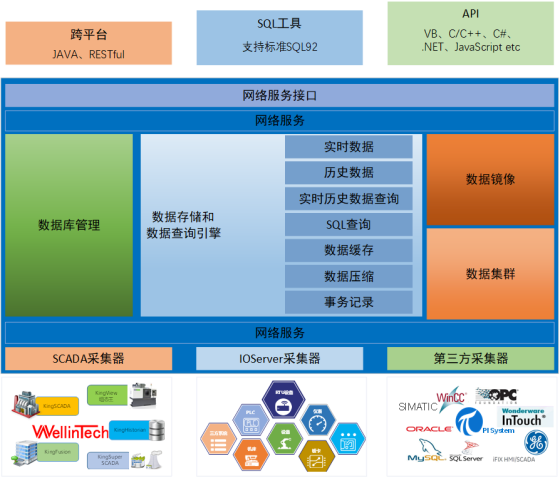 工业现场存在着海量过程数据,这些数据的并发存储与查询成为关系数据库应用的瓶颈。亚控公司在2006年推出国内首款工业实时历史数据库KingHistorian,拥有完全自主知识产权的工业实时库系统。工业实时数据库的诞生,不仅能将分散的海量过程数据采集并存储下来,解决了关系数据库应用难题,该系统具备高性能、高可用的特点,包含数据采集层、数据仓储层以及数据应用层,可高速完成现场海量实时数据的采集和存储,通过大数据挖掘、分析赋能企业智能制造。“知过去,晓未来”,可以帮助用户完成底层广泛的生产过程数据整合,消除信息孤岛,为企业将“数据转化为信息”提供稳定可靠的数据支撑,有效地指导生产,提高生产效率,为企业智能制造添上翅膀。